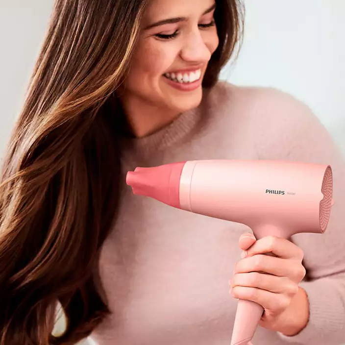 Máy sấy tóc ion PHILIPS 1800W BHD720, máy sấy tóc ion an toàn bảo vệ tóc chống quá nhiệt B Sấy tóc nhanh khô với Máy sấy tóc Dòng 7000 của Philips. Công nghệ ThermoShield