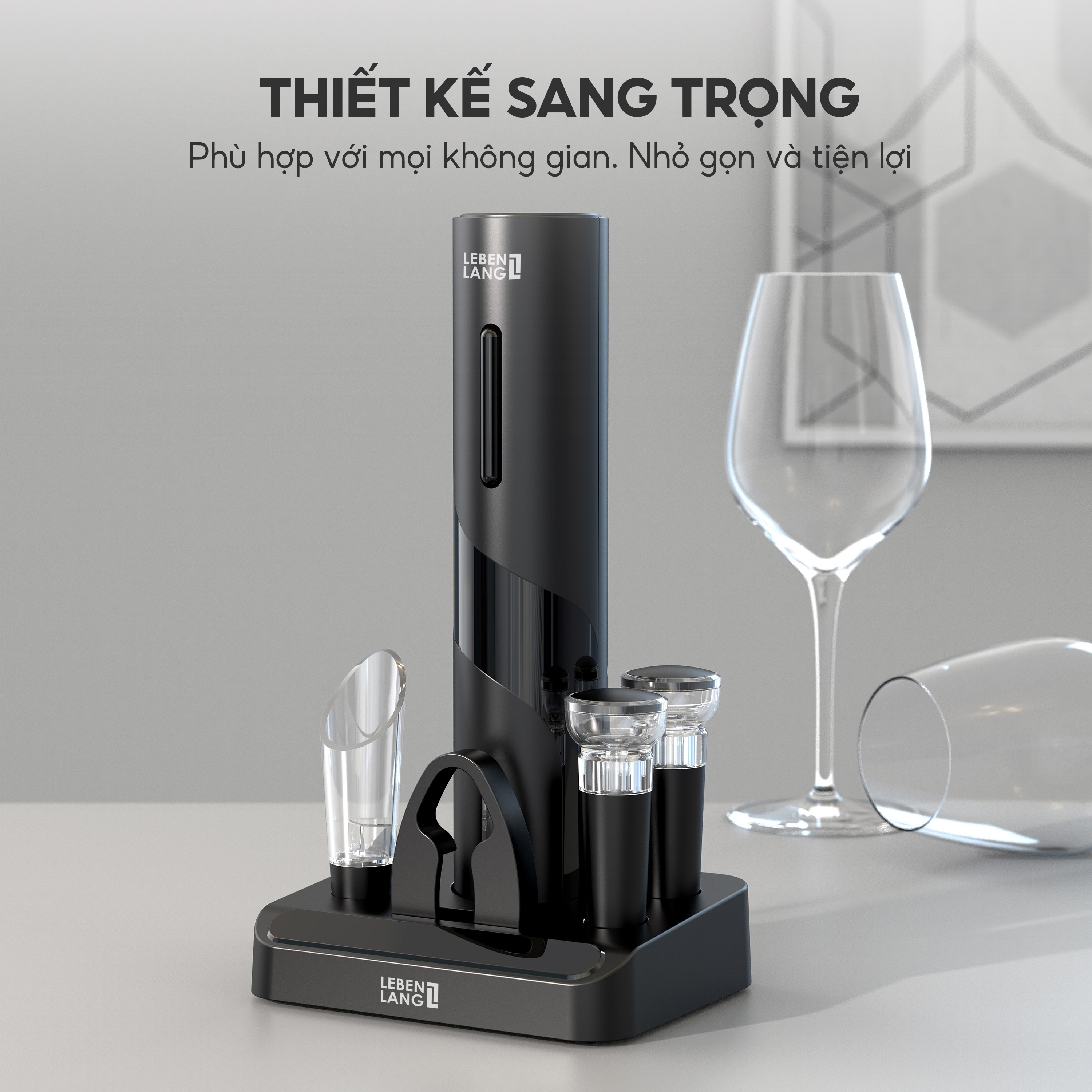 - Bộ mở rượu vang điện Lebenlang LBL2021 là phụ kiện không thể thiếu cho bất kỳ tín đồ rượu vang nào, mang lại sự tiện lợi tối đa với thiết kế không dây, dùng pin sạc