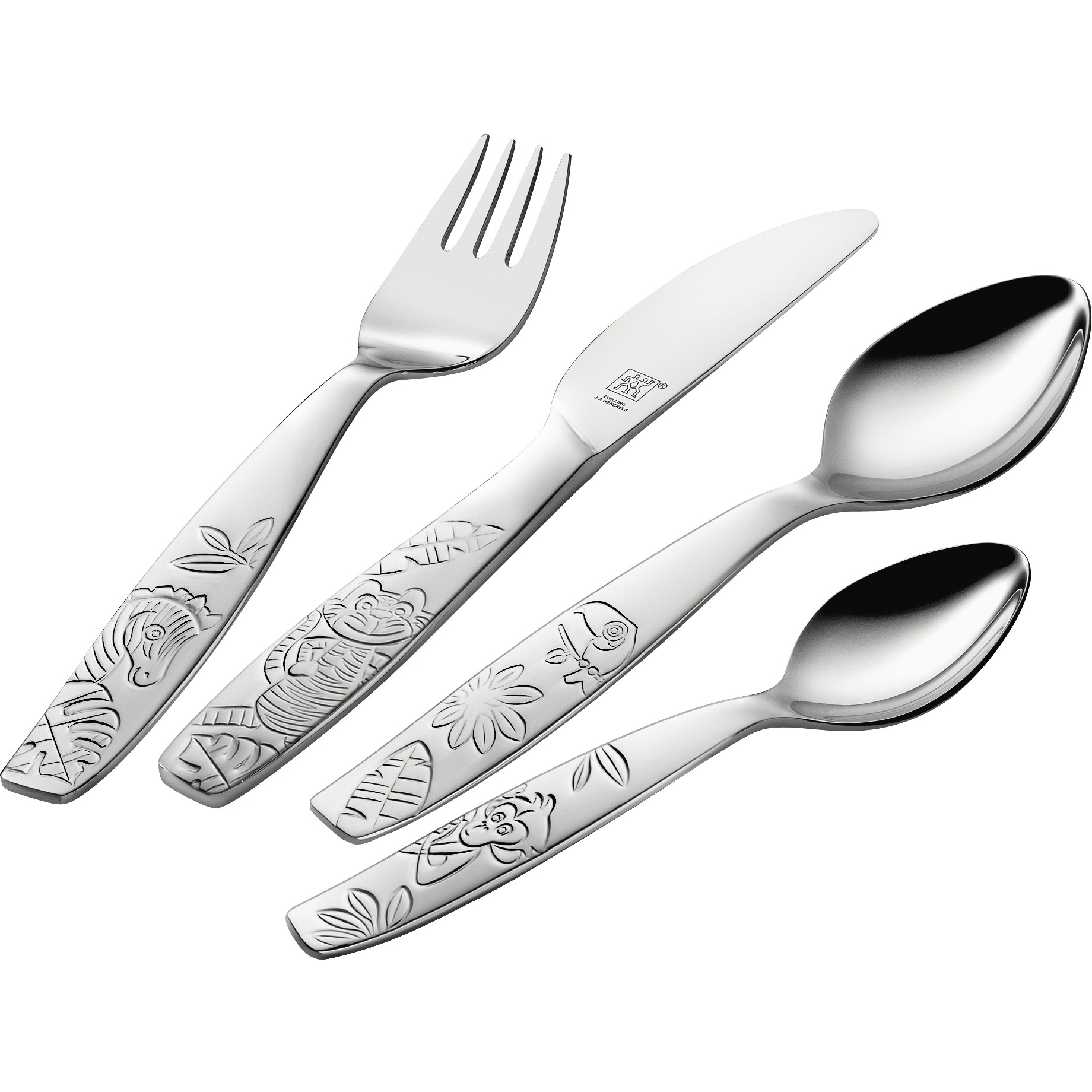 Bộ đồ ăn 4 món dành cho trẻ em thuộc dòng Jungle là sản phẩm hoàn hảo cho những bàn tay nhỏ bé đang trải nghiệm dao, nĩa và thìa đầu tiên. Để làm cho trải
