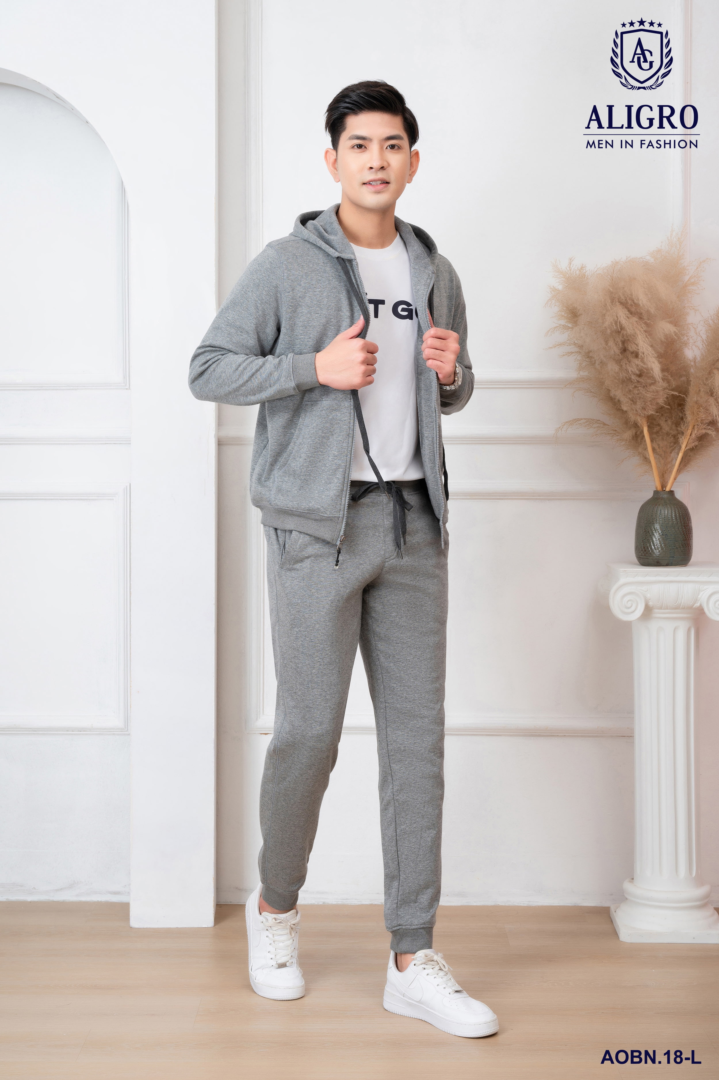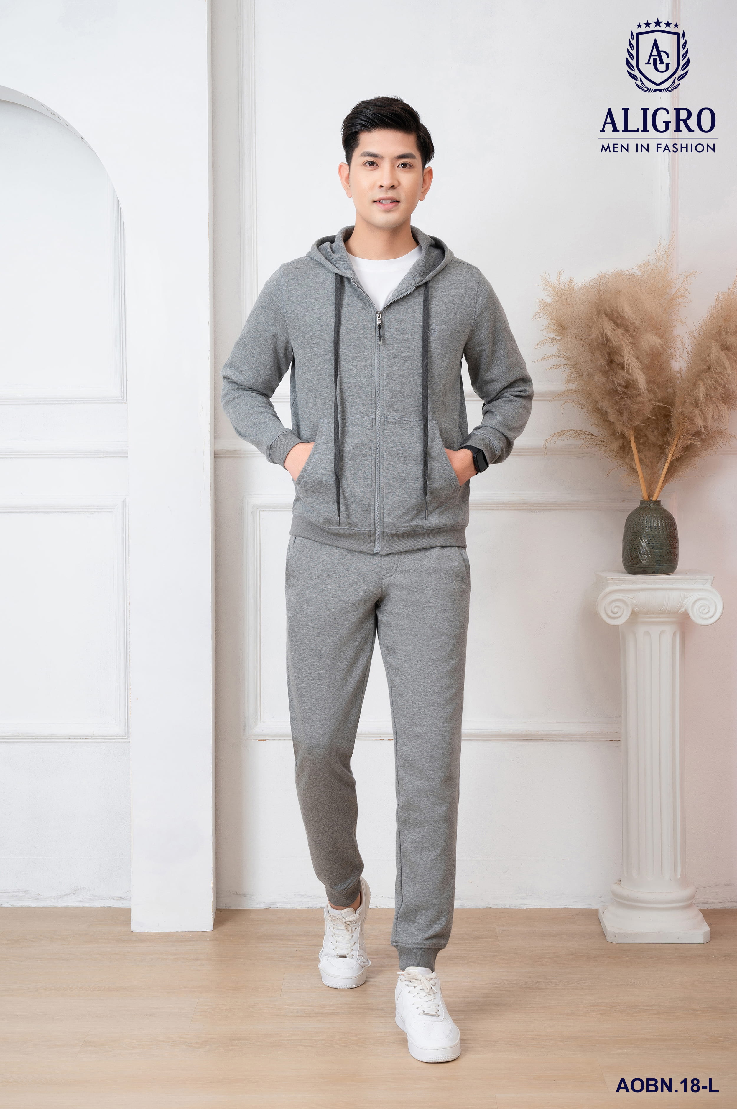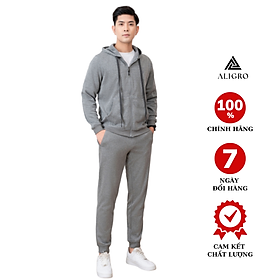✨Bộ nỉ kéo khóa ALIGRO có mũ màu ghi nhạt BN.18