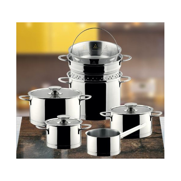 Bộ nồi Berndes Milesima được sản xuất từ Inox 18/10 - loại inox không gỉ sét cao cấp đạt tiêu chuẩn Châu Âu. Inox cao cấp này sáng loáng tạo cảm giác sạch, dễ vệ sinh sau nấu khi nấu nướng.