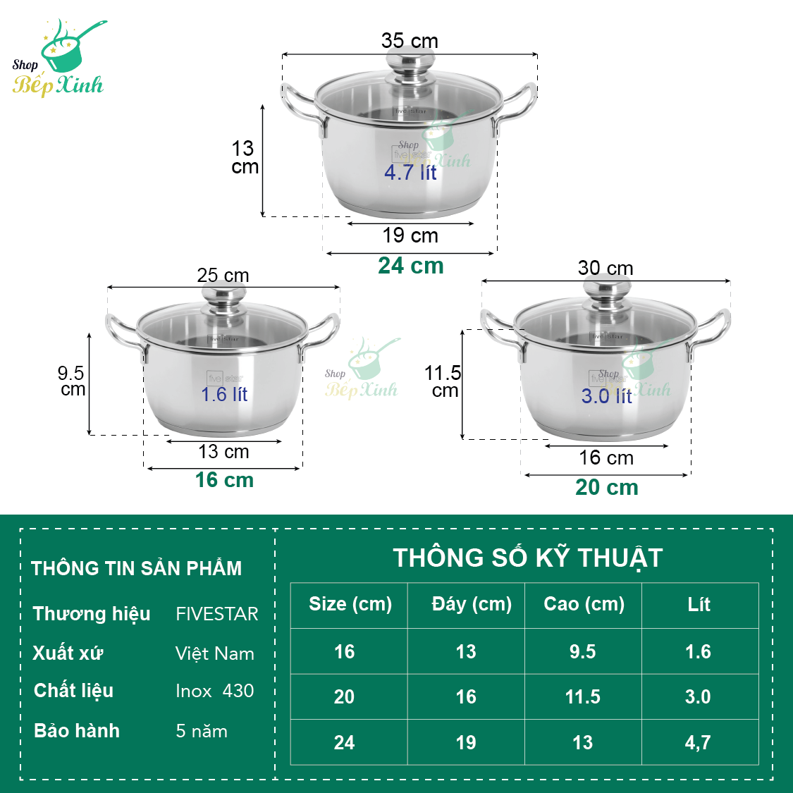 Bồ nồi và xửng 32cm Fivestar Tân Hợp Thành chuẩn xịn chính hãng, bảo hành 5 năm