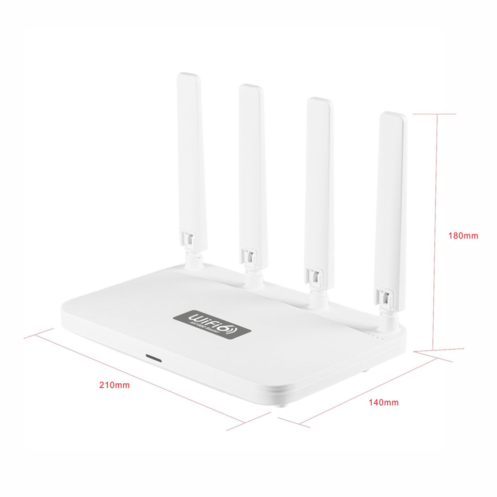 Router 3200Mbps Wi-Fi 6 Dual-band Gigabit Mesh: - Băng thông lớn; CPU lõi kép 4 luồng, hỗ trợ NAT - Truy cập đồng thời 48 người dùng (đề xuất) truy cập Wifi hai dải băng