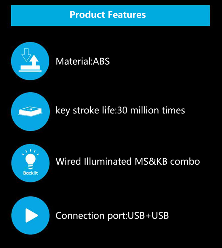 Bộ bàn phím + chuột có dây USB 2.0 R8 1923 - Đen Công nghệ chống mờ laser Đèn led 7 màu 1/ Bàn phím : Thiết kế đặc biệt: giảm thiểu tiếng ồn khi