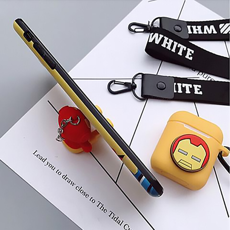 Bộ phụ kiện silicon bảo vệ tai nghe Airpods 1 / 2 có móc treo và đế dựng điện thoại hình siêu nhân - Hàng chính hãng SmileBox