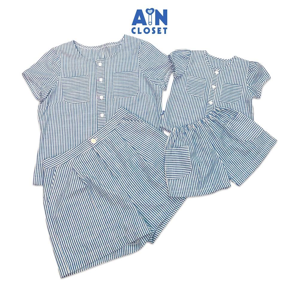 ✨Bộ quần áo ngắn cho mẹ Kẻ sọc xanh linen cotton - AICDMERIPDHT - AIN Closet