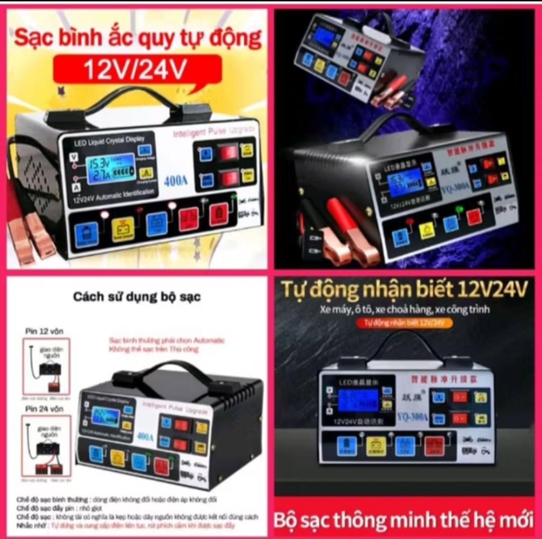 Tự động sạc theo chu kỳ và chỉnh dòng sạc phù hợp với dung lượng Acquy 12/24v từ 6ah đến 400ah