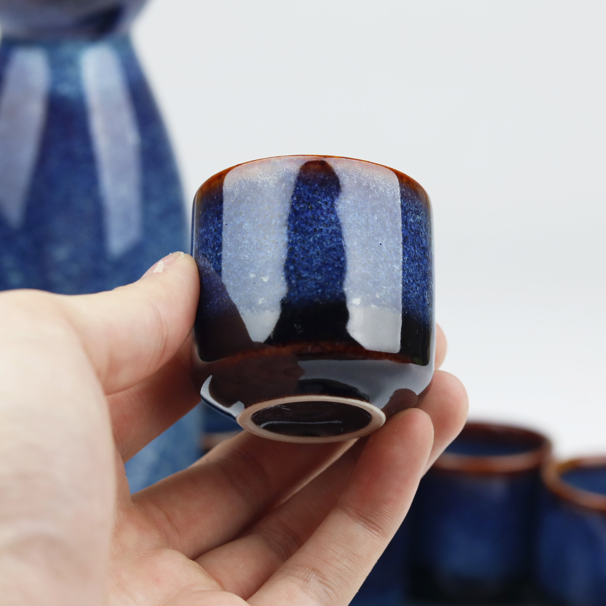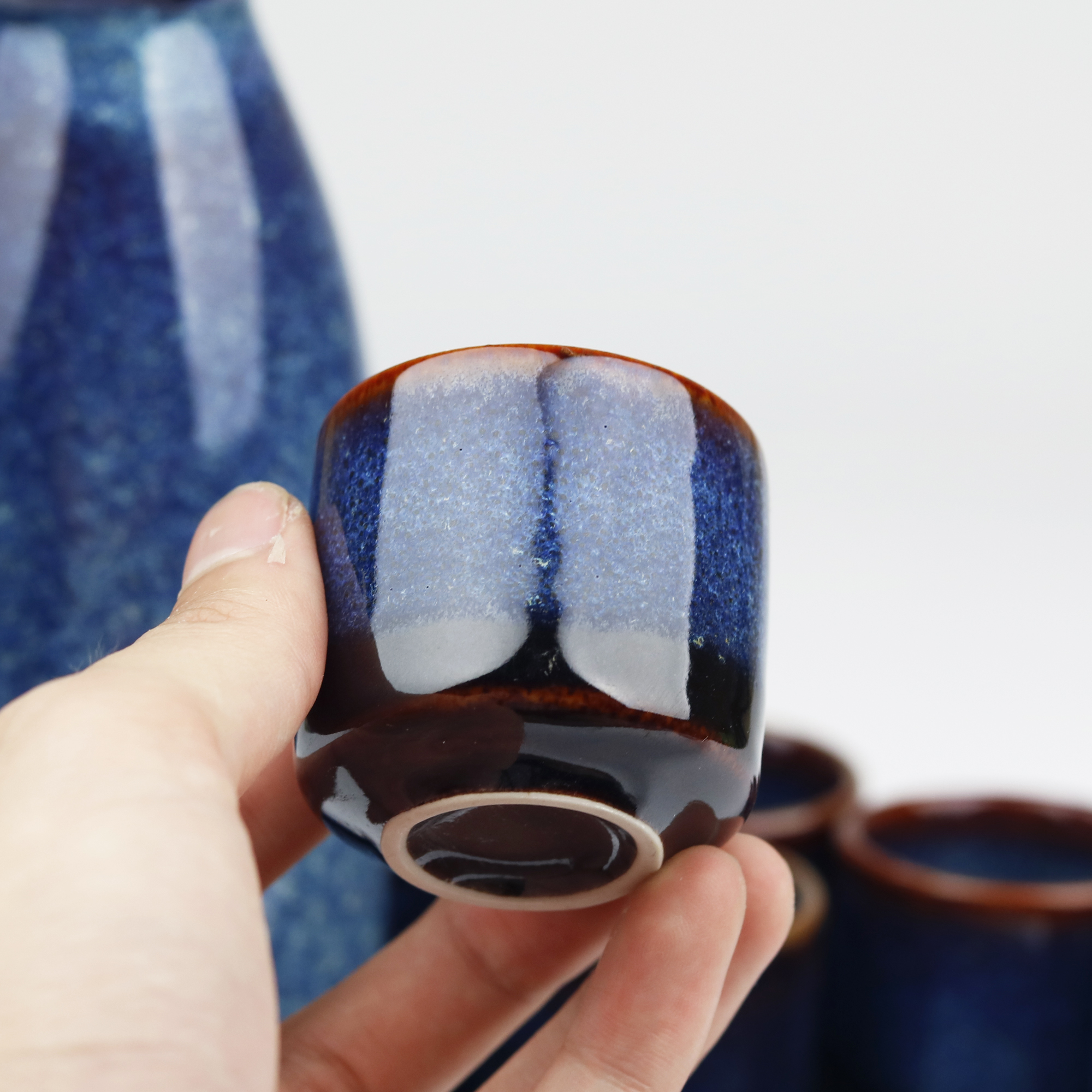✨Bộ Sake gốm sứ men hỏa biến Bát Tràng cao cấp-300ml- Đĩa quạt