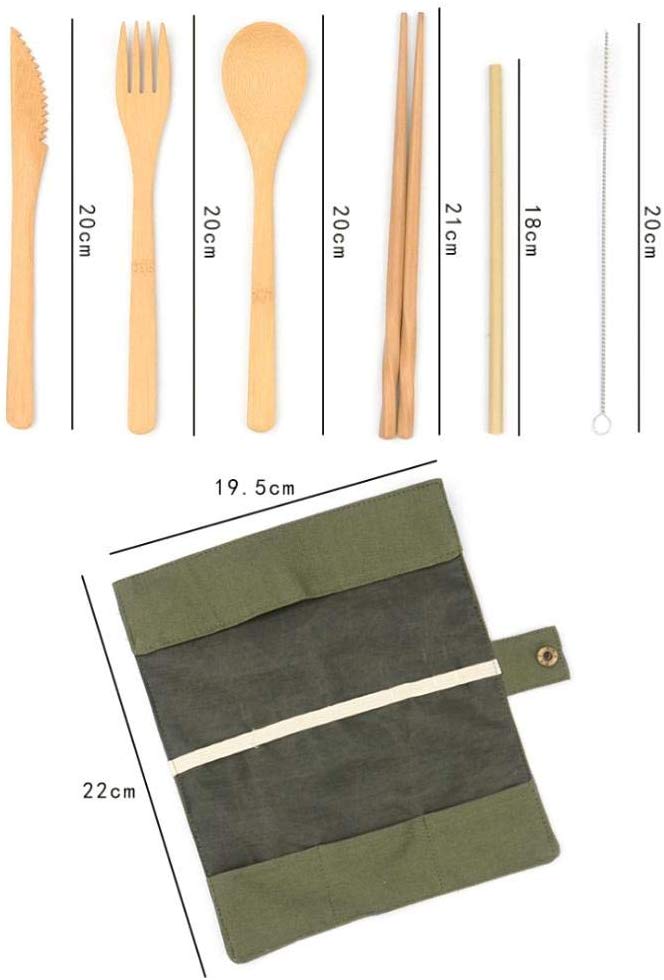 ----- THÔNG SỐ: - Kích thước: - Muỗng: 19cm - Muỗng trà: 16cm - Nĩa: 19.5cm - Dao: 22cm - Chất liệu: Cán tre, hợp kim carbon và thép không gỉ chất lượng cao. -
