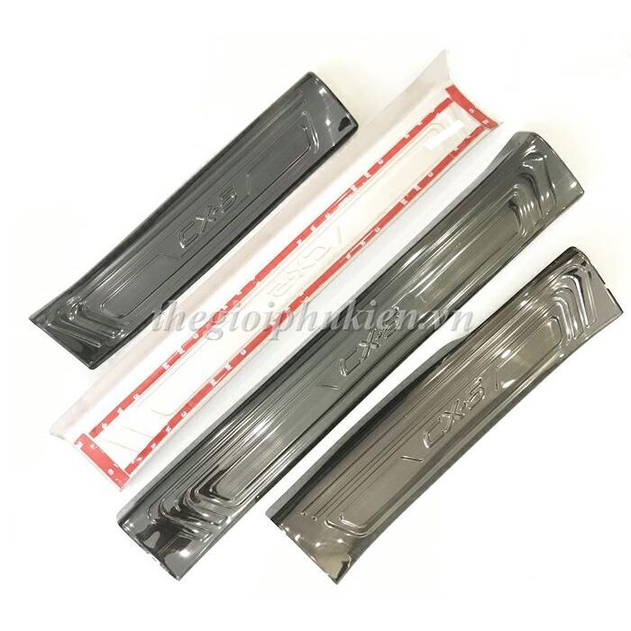 Bộ Ốp Bậc Cửa Trong Ngoài Xe Mazda Cx5 2018-2022, chất liệu Titan có tác dụng che chắn và bảo vệ cho bậc chân lên xuống hạn chế những trầy xước hoặc hư hỏng cho
