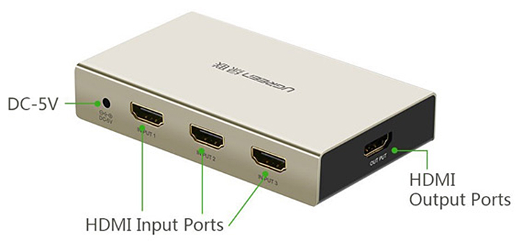 - Bộ Swich Cổng HDMI Ugreen Vào 3 Cổng HDMI Ra 1 Cổng HDMI Remote 40278 với thiết kế nhỏ gọn, vỏ hợp kim cao cấp. Bề mặt tráng nhựa mỏng chống sầy xước, đầu