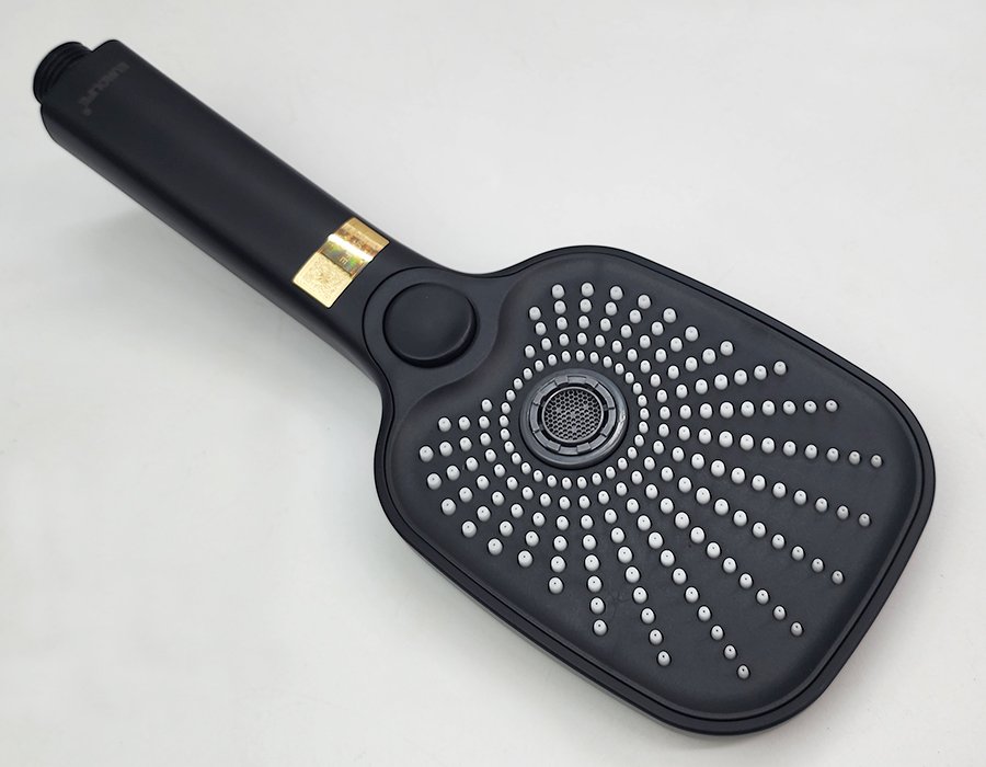 Chất liệu Nhưa ABS mạ màu đen, có thể điều chỉnh hướng dòng chảy của tay sen ( gật gù)