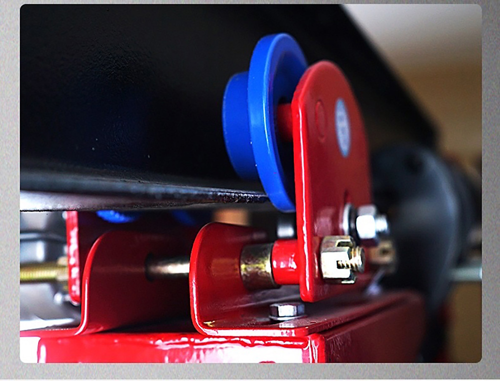 • Tiến hành lắp đặt con rùa điện vào máy tời mini.  Đo độ rộng của cánh dầm để xác định khoảng cách của 2 cụm bánh xe. Bạn có thể tháo bớt long đen 2 bên để thu nhỏ lại khoảng cách sao cho phù hợp với cánh dầm.