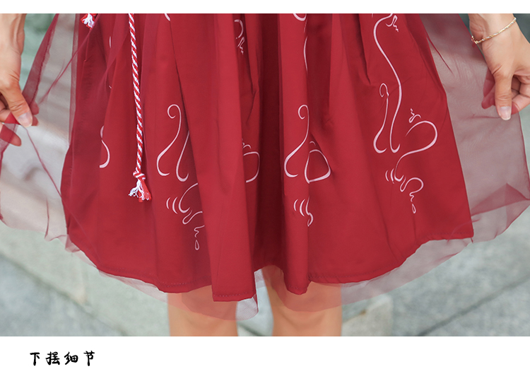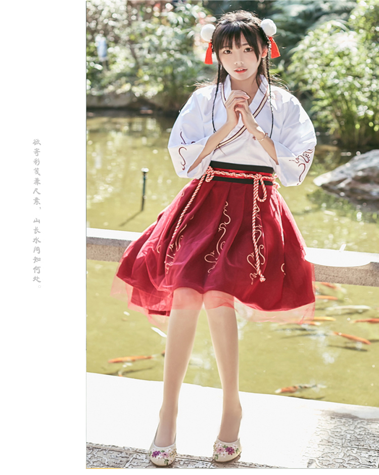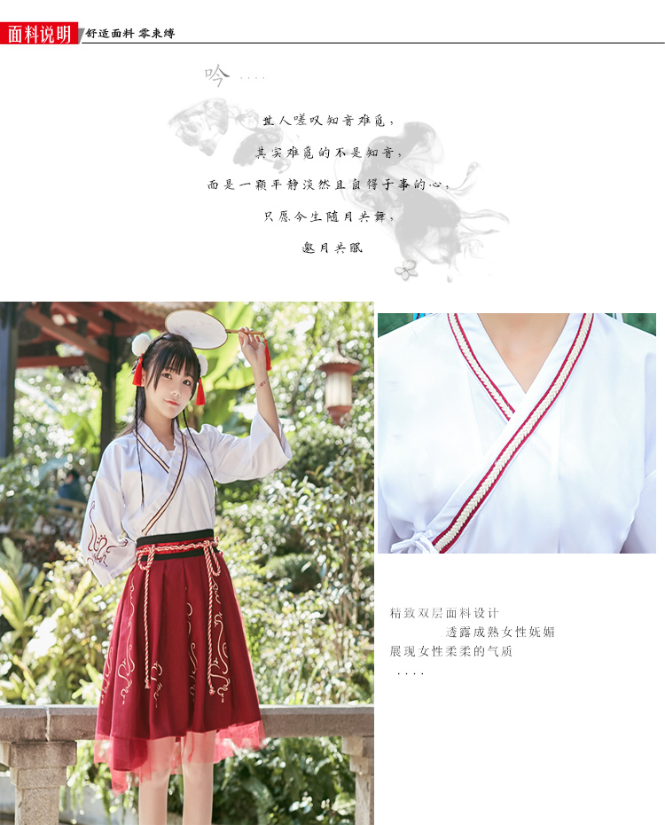 Bộ trang phục hóa trang thành cô gái Trung Hoa, thiết kế hoàn toàn bằng thủ công mọi đường nét, hoa văn đường chỉ may một cách cực kỳ sắc xảo. Bộ trang phục gồm áo trắng và váy đỏ. Sản phẩm bao gồm áo, váy, dây nịt.