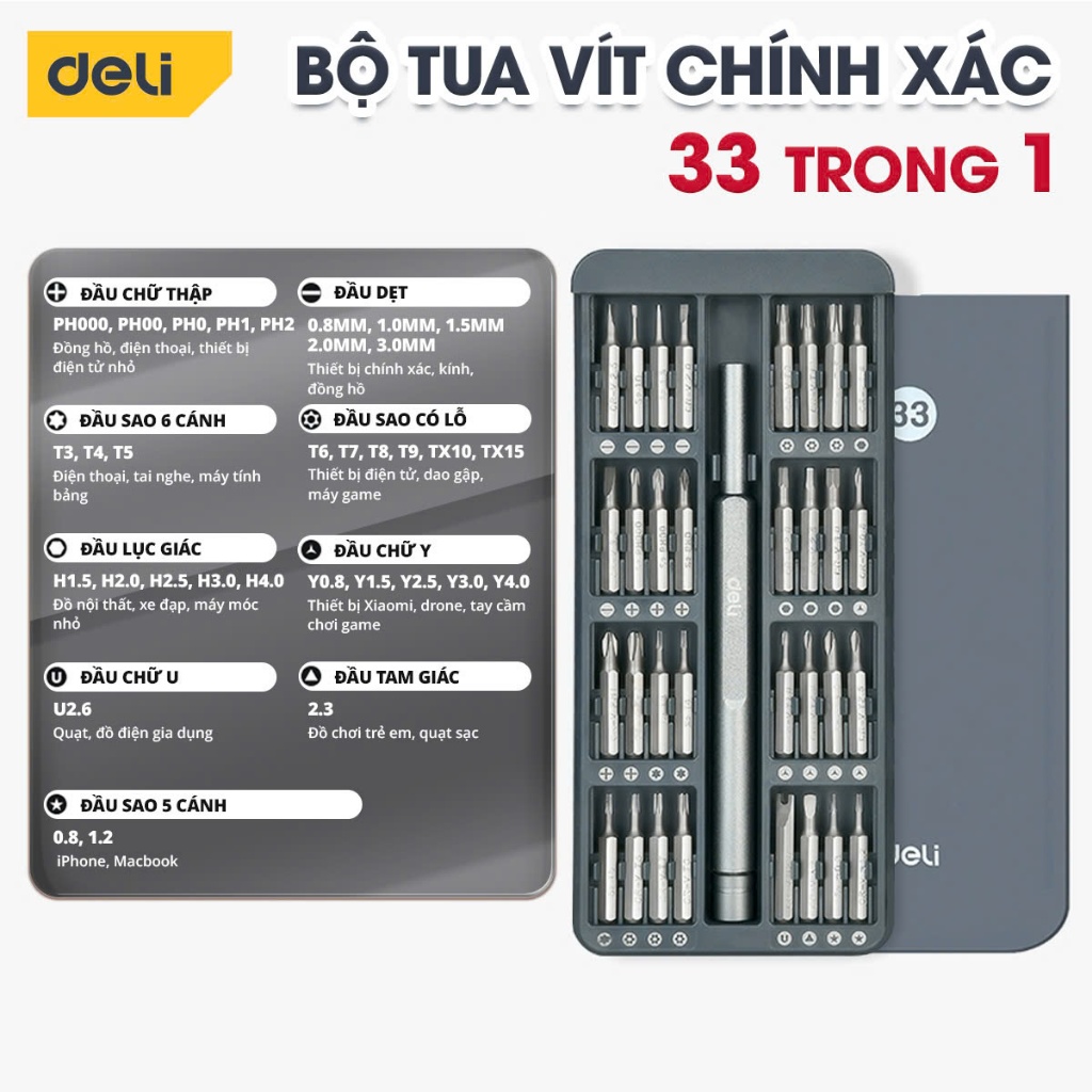 Bộ tua vít 34 chi tiết Deli sửa chữa điện thoại máy tính bảng đồ điện tử