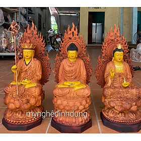 Tượng Tây Phương Tam Thánh Tọa Đài Sen Gỗ Cẩm Vàng Cao 90cm (Mẫu Mới)