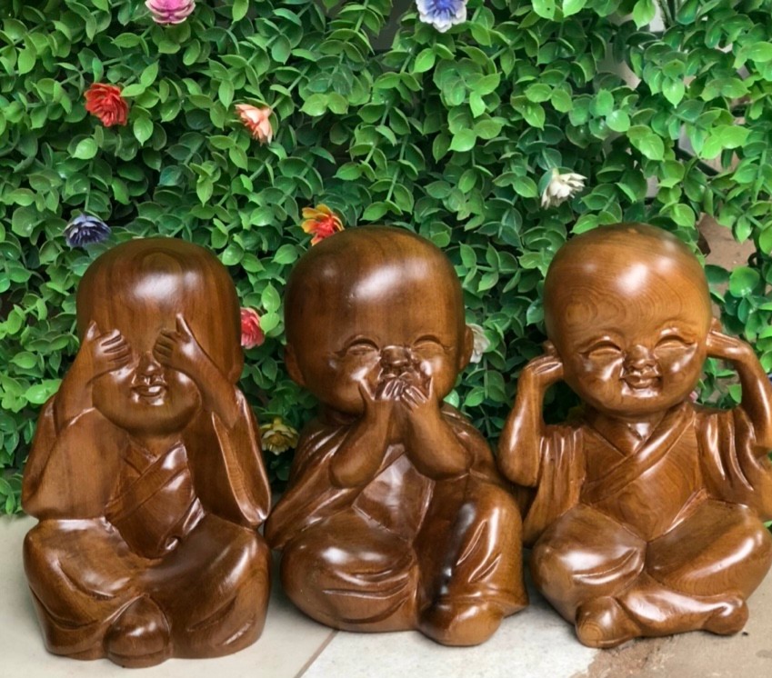 _ Bộ tượng tam không được làm bằng chất liệu gỗ bách xanh thơm phức liền khối thơm phức tự nhiên 100% _ Kt cao 13×9×8cm _ Bộ tượng tam không được điêu khắc trạm