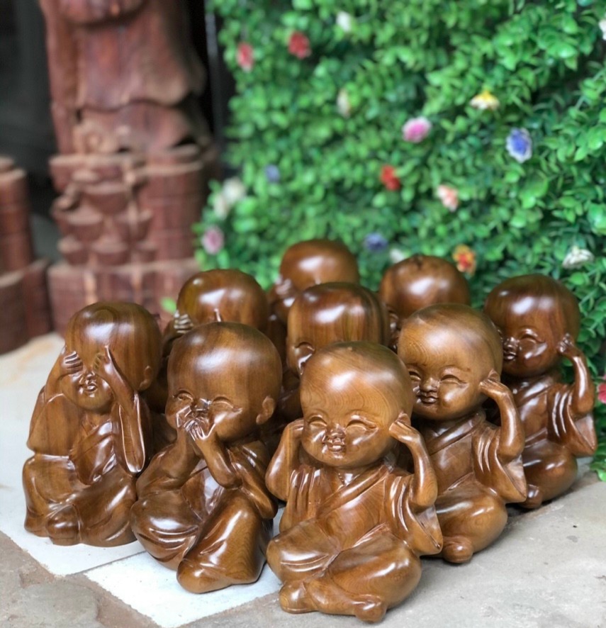 _ Bộ tượng năm chú tiểu đựng ống tăm được làm bằng chất liệu gỗ bách xanh liền liền khối tự nhiên 100% _ Kích thước 10×8×6cm _ Bộ tượng năm chú tiểu đựng ống