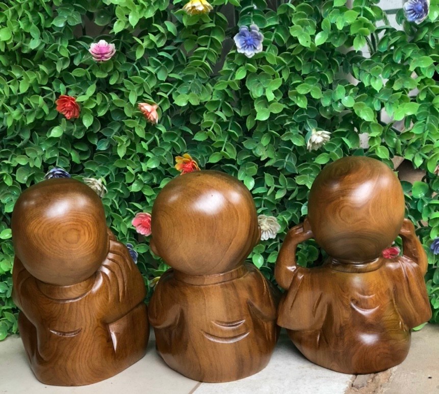 ✨Bộ tượng tam không trang trí bàn làm việc ,láp tốp ,ôtô bằng gỗ bách xanh thơm phức kt cao 13×9×8cm