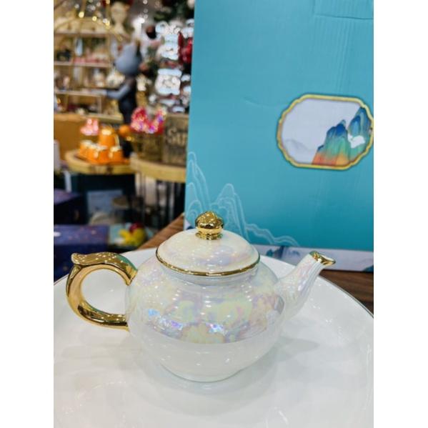 Bộ ấm chén Bát Tràng men trắng viền vàng kim dáng phú quý kèm hộp làm quà tặng sang trọng Với chất men trắng tinh khôi không tỳ vết, từ chén, đĩa, ấm, nắp