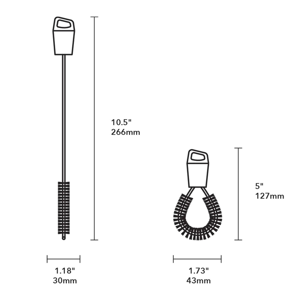 Bộ sản phẩm gồm 2 món: bàn chải cong cho nắp ly và bàn chải thẳng dài cho ống hút, giúp tiếp cận mọi góc độ dễ dàng. Tay cầm được thiết kế công thái học, mang lại cảm giác chắc chắn và thoải mái khi sử dụng. Vòng thép không gỉ tháo rời giữ các bàn chải gọn gàng và dễ dàng bảo quản.