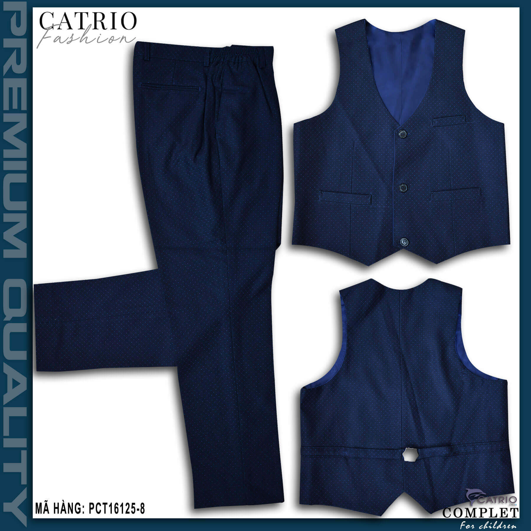 ✨BỘ VEST BÉ TRAI CATRIO PCT16125/8 LÀ BỘ COMPLET TRẺ EM từ 6 tuổi đến 10 tuổi (25kg đến 35kg) thuộc bộ sưu tập quần áo trẻ em trang trọng cho mùa lễ hội, tết, tiệc cưới, sự kiện sinh nhật, được làm bằng vải dạ cao cấp nhất, đẹp đến từng chi tiết