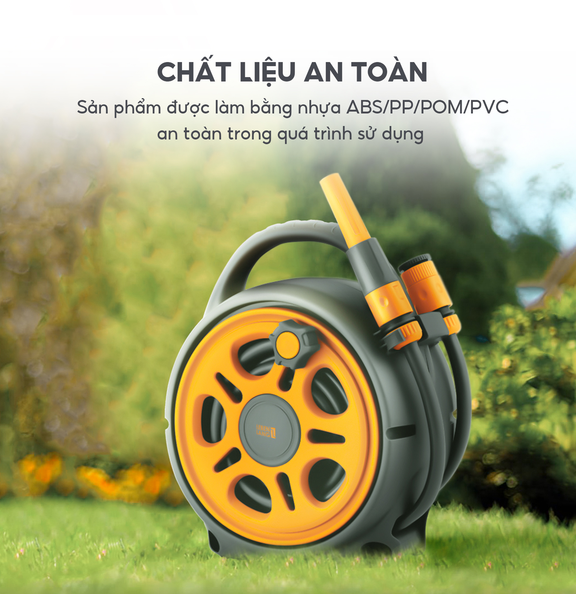 Bộ vòi nước tưới cây, rửa xe đa năng Lebenlang LBLB3368 dây dài 12m, 5 đầu phun đi kèm - hàng chính hãng   8 LÝ DO NÊN CHỌN BỘ VÒI TƯỚI CÂY LBLB3368 CỦA LEBENLANG  -  Dây Cuộn Tự Động -  Sử dụng Dễ dàng và nhanh chóng -  Cơ Chế Tăng Áp Lực Nước -  Thiết kế đa năng với 5 chế độ phun nước đa dạng -  Chất Liệu An Toàn từ nhựa tổng hợp ABS/PP/POM/PVC không độc hại -  Tiện Lợi và Đa Năng -  Thu Gọn Dễ Dàng không chiếm nhiều diện tích -  Chất Lượng Đáng Tin Cậy: Thương hiệu Lebenlang đến từ Đức   I. THÔNG SỐ KỸ THUẬT  -  Thương hiệu: Lebenlang -  Model: LBLB3368 -  Dây dài: 12m -  Cân nặng: 2kg -  Kích thước: 32 x 32 x 13 cm -  Phụ kiện gồm:1 cuộn ống nhỏ, 2 đầu nối ống, 1 bộ chuyển đổi vòi , 1 súng phun và 1 vòi phun.   II. ĐẶC ĐIỂM NỔI BẬT -  Đem lại sự tiện lợi và đa năng cho mọi người trong gia đình, bộ vòi nước tưới cây và rửa xe Lebenlang LBLB3368 là lựa chọn hàng đầu cho nhu cầu vận động trong việc chăm sóc cây cảnh và bảo dưỡng xe hơi.   -  Bộ vòi nước tưới cây LBLB3368 Dây Cuộn Tự Động: Dây dài 12 mét tự động cuộn lại sau mỗi lần sử dụng, tiết kiệm không gian và dễ dàng lưu trữ.   -  Xịt rửa đa năng Lebenlang sử dụng Dễ dàng và nhanh chóng trong việc lắp đặt và sử dụng, không cần kỹ thuật chuyên nghiệp. Chỉ cần một chút xoay núm và kéo dây, bạn sẽ sẵn sàng cho một buổi làm việc nhanh chóng và hiệu quả.   -  Máy xịt rửa Lebenlang Cơ Chế Tăng Áp Lực Nước: Nước phun ra xa và mạnh mẽ hơn nhờ vào cơ chế tăng áp lực thông minh.   -  Thiết kế đa năng với các chế độ phun nước đa dạng, từ tia nước mạnh mẽ đến phun sương nhẹ nhàng, giúp bạn dễ dàng điều chỉnh để phù hợp với mọi tình huống sử dụng.   -  Bộ vòi phun tưới cây LBLB3368 Đa Chế Độ Phun Nước: Với 5 chế độ phun nước đa dạng, từ tia nước mạnh đến phun sương nhẹ nhàng, phù hợp với mọi nhu cầu sử dụng.   -  Chất Liệu An Toàn: Sản phẩm Vòi phun nước Lebenlang được làm từ nhựa tổng hợp ABS/PP/POM/PVC không độc hại với môi trường và con người