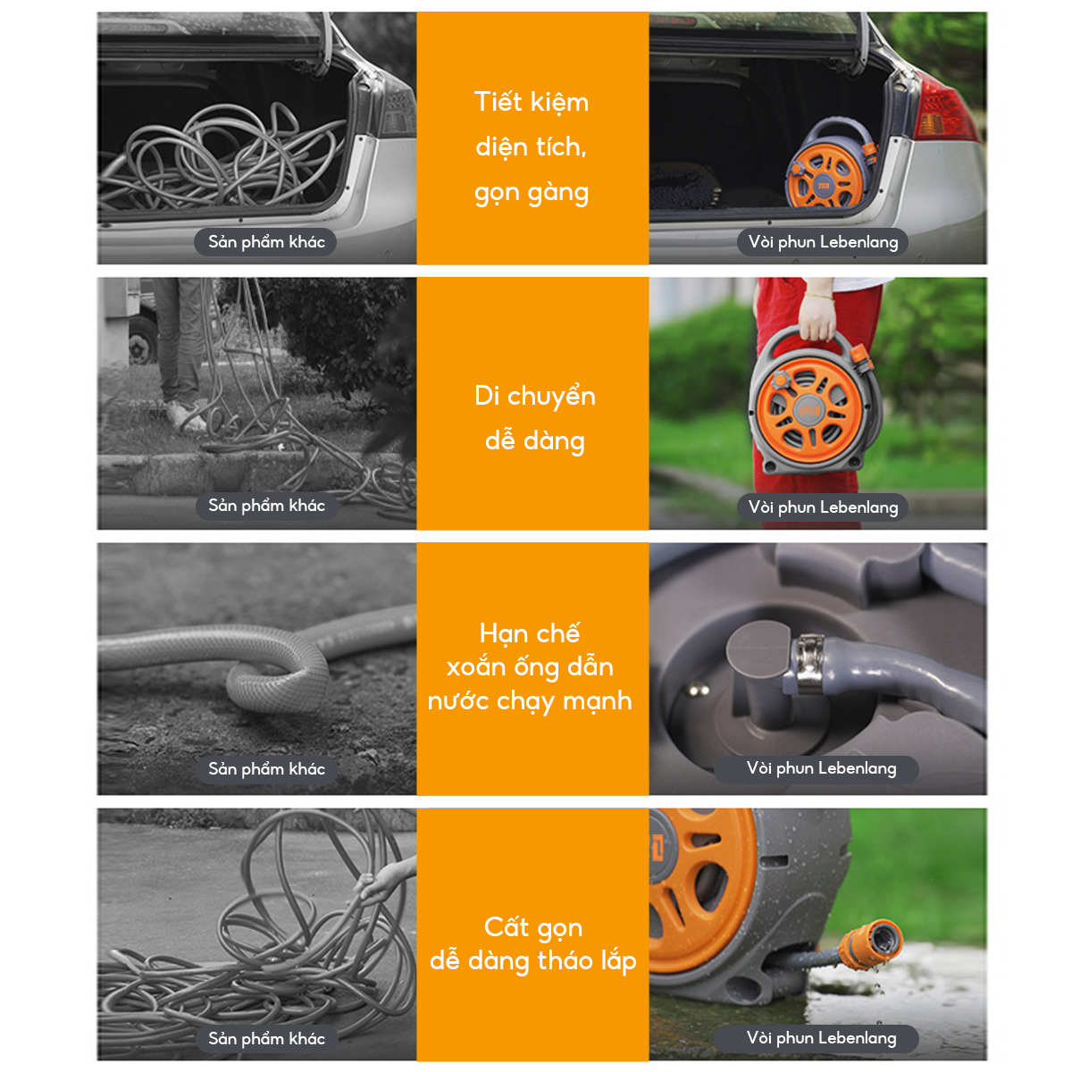 Bộ vòi nước tưới cây, rửa xe đa năng Lebenlang LBLB3368 dây dài 12m, 5 đầu phun đi kèm - hàng chính hãng 8 LÝ DO NÊN CHỌN BỘ VÒI TƯỚI CÂY LBLB3368 CỦA LEBENLANG -  Dây Cuộn Tự Động-  Sử dụng Dễ ...