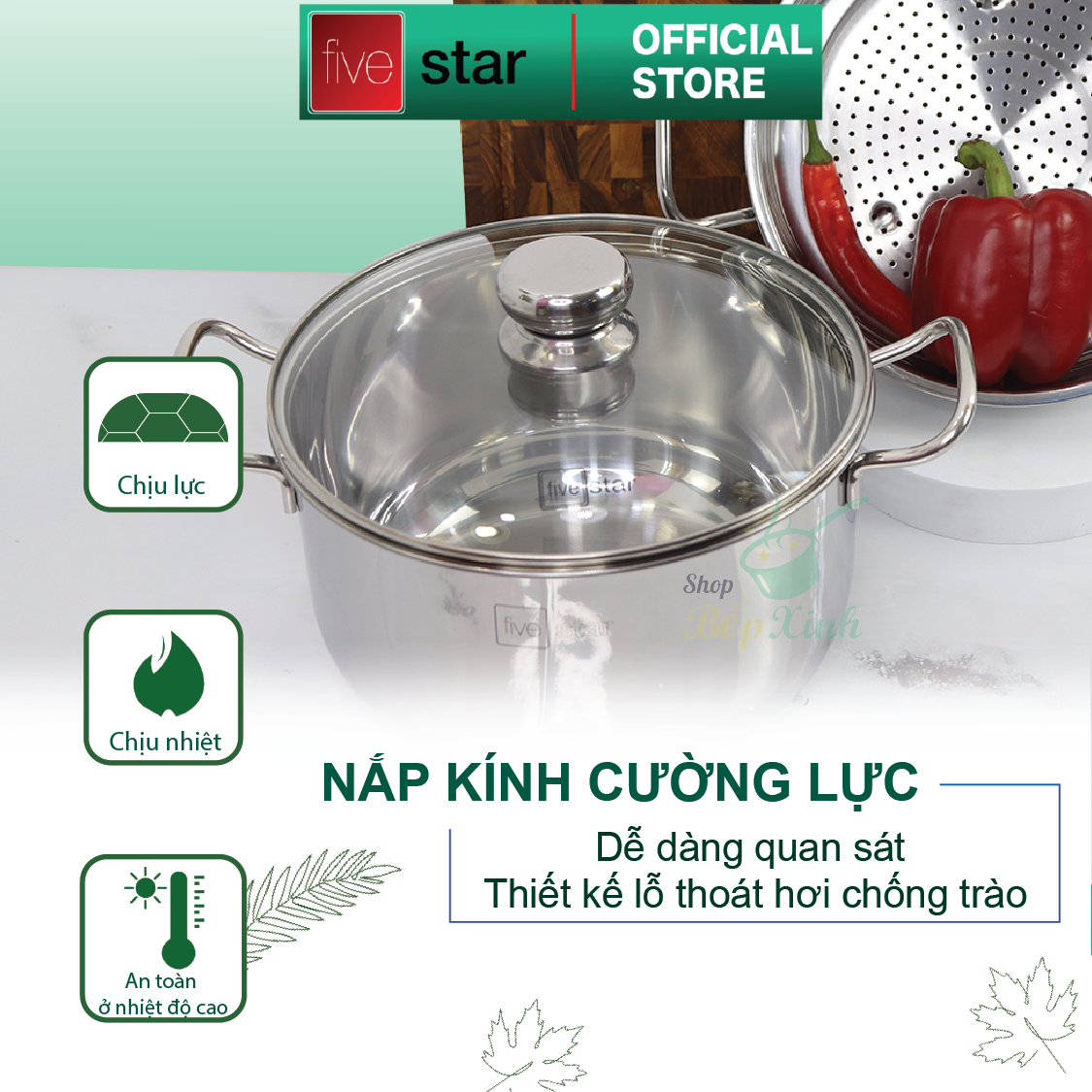 ✨Bộ xửng hấp 3 đáy inox 430 FiveStar Standard bếp từ nắp kính tặng 5 muỗng ăn ( 24cm )