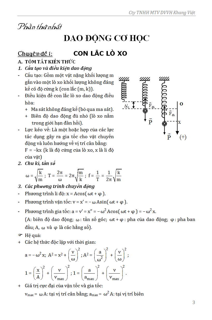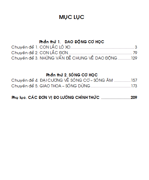 Phần 1: Dao Động Cơ Học Chuyên đề 1: Con lắc lò xo Chuyên đề 2: Chuyên lắc đơn Chuyên đề 3: Những vấn đề chung về dao động Phần 2: Sóng cơ học Chuyên đề 4: Đại cương về sóng cơ -sóng âm Chuyên đề 5: Giao thoa-sóng dừng