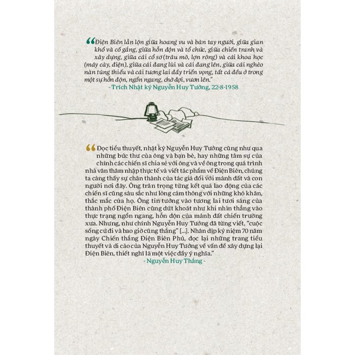 Tác phẩm được thai nghén chính trong cái khó khăn, vất vả của một đời sống xây dựng chuyên cần, vị lai, không ngưng nghỉ một phút giây nào ấy. Một ấn bản được biên soạn công phu và giàu tâm huyết, như một việc làm ý nghĩa và thiết thân để kỷ niệm sự kiện 70 năm Chiến thắng Điện Biên Phủ.