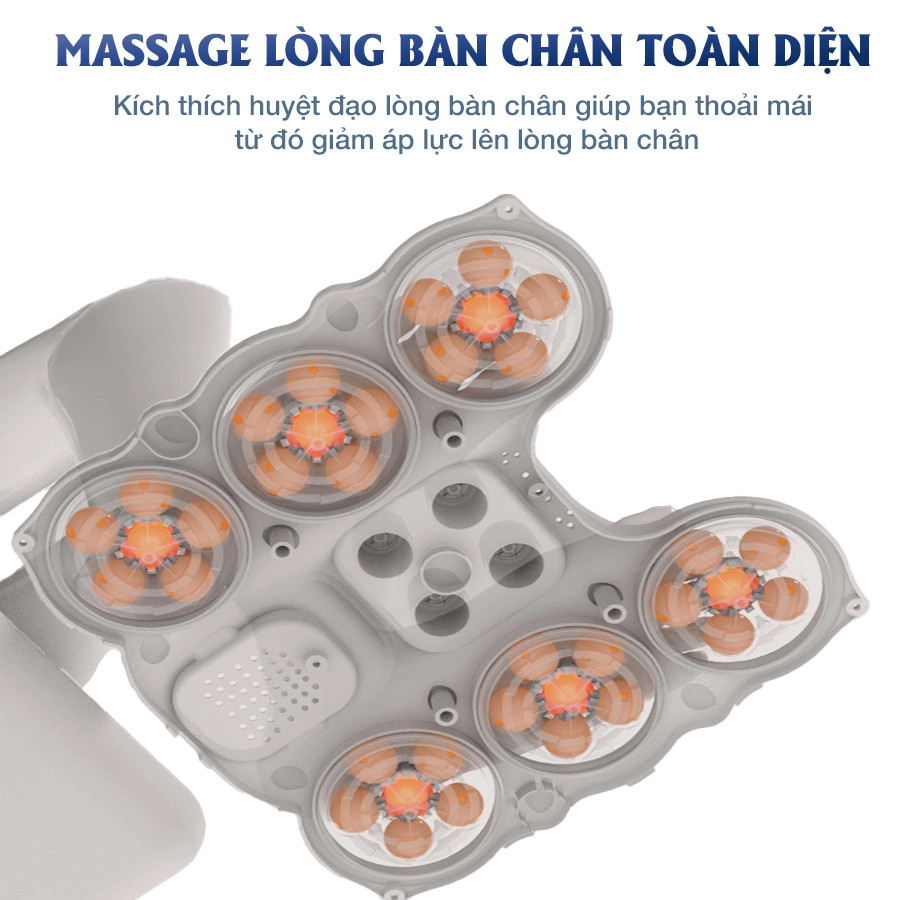 Con Lăn Massage Tự Động: 7 con lăn tự động mô phỏng đến 6 kỹ thuật massage khác nhau, tác động trực tiếp vào các huyệt đạo trên bàn chân để giảm đau nhức và thúc đẩy lưu thông máu.