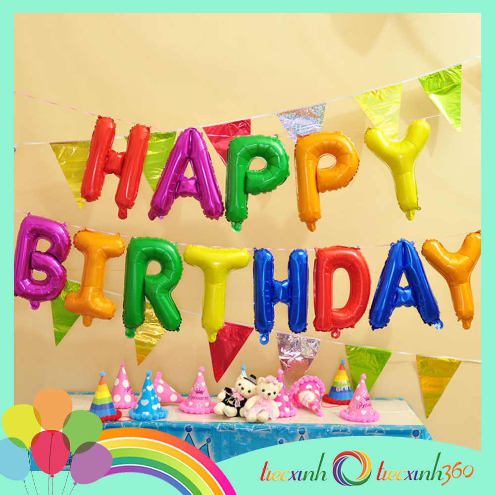 Bong bóng chữ Happy Birthday trang trí sinh nhật.