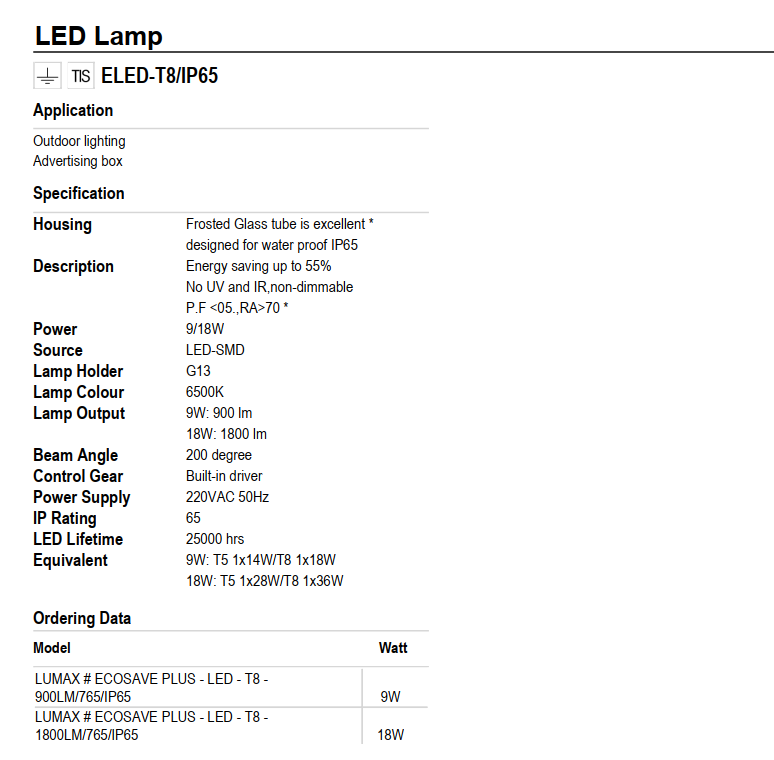 ✨BÓNG ĐÈN LUMAX#ECOSAVE PLUS T8/765/IP65 - xx Thái Lan, Tiết kiệm năng lượng