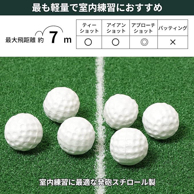 Bóng tập luyện bằng xốp lý tưởng cho việc luyện tập phương pháp tiếp cận trong nhà Âm thanh đánh nhỏ, lý tưởng cho việc luyện tập ban đêm. Khoảng cách bay tối đa: Khoảng