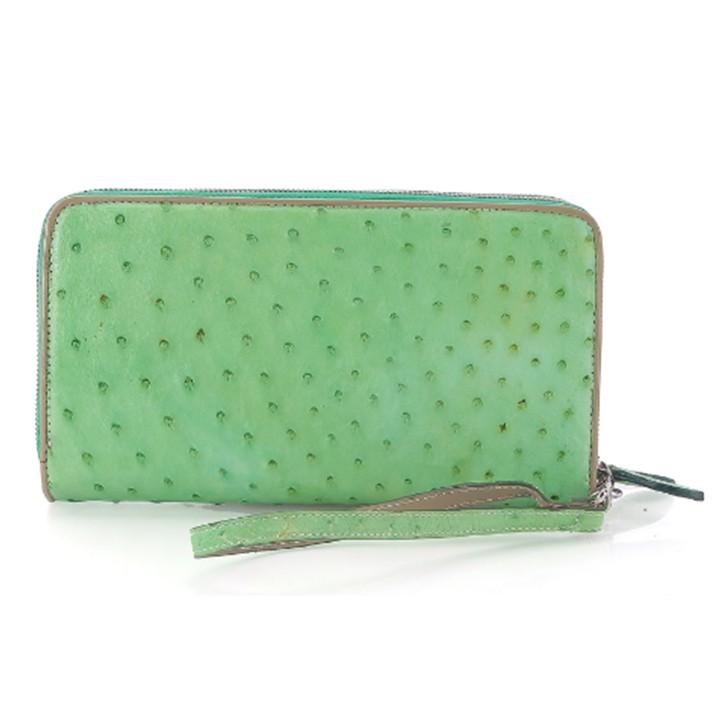 - Tên sản phẩm: Bóp da đà điểu nhiều ngăn màu xanh lá HP3427