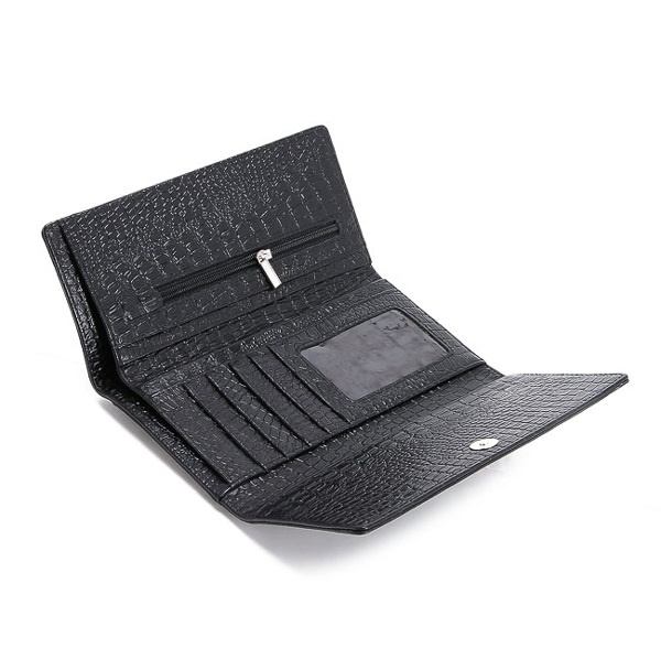 Ví nữ/Bóp nữ da bò vân cá sấu Huy Hoàng bấm nút màu da, đen, nâu 3108-09-10