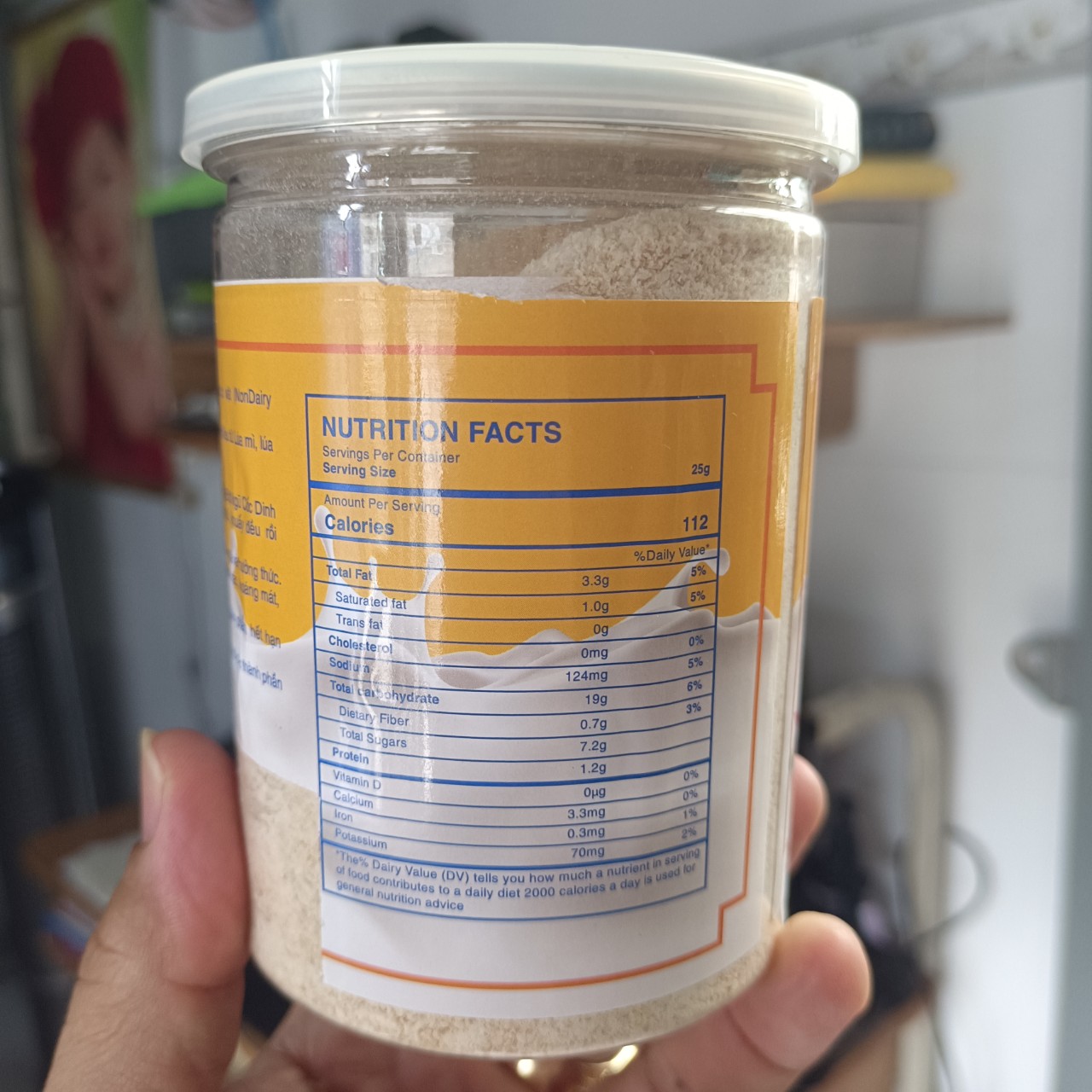 - Bột ngũ cốc 40%, bột kem béo thực vật (NonDairy Creamer), đường trắng