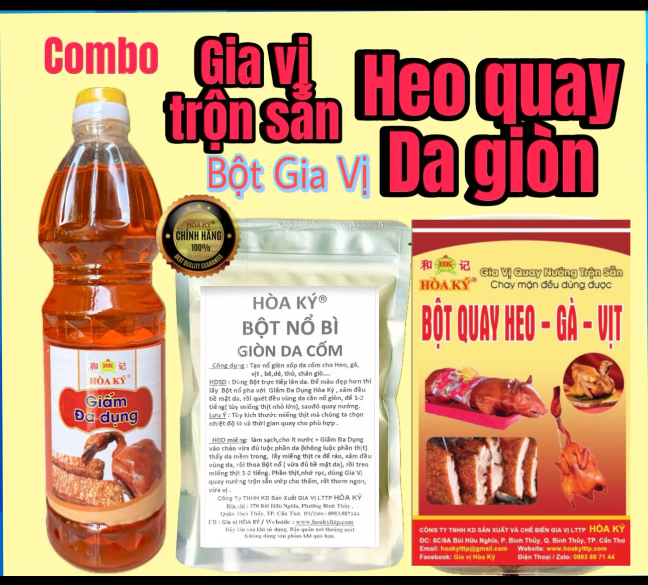 ombo quay nướng đầy đủ gia vị, không cần nêm thêm. Gồm có : Muối nổ bì giòn da cốm Gia vị trộn sẵn ướp phần thịt Giấm (Dấm) đa dụng tạo màu đẹp ,da