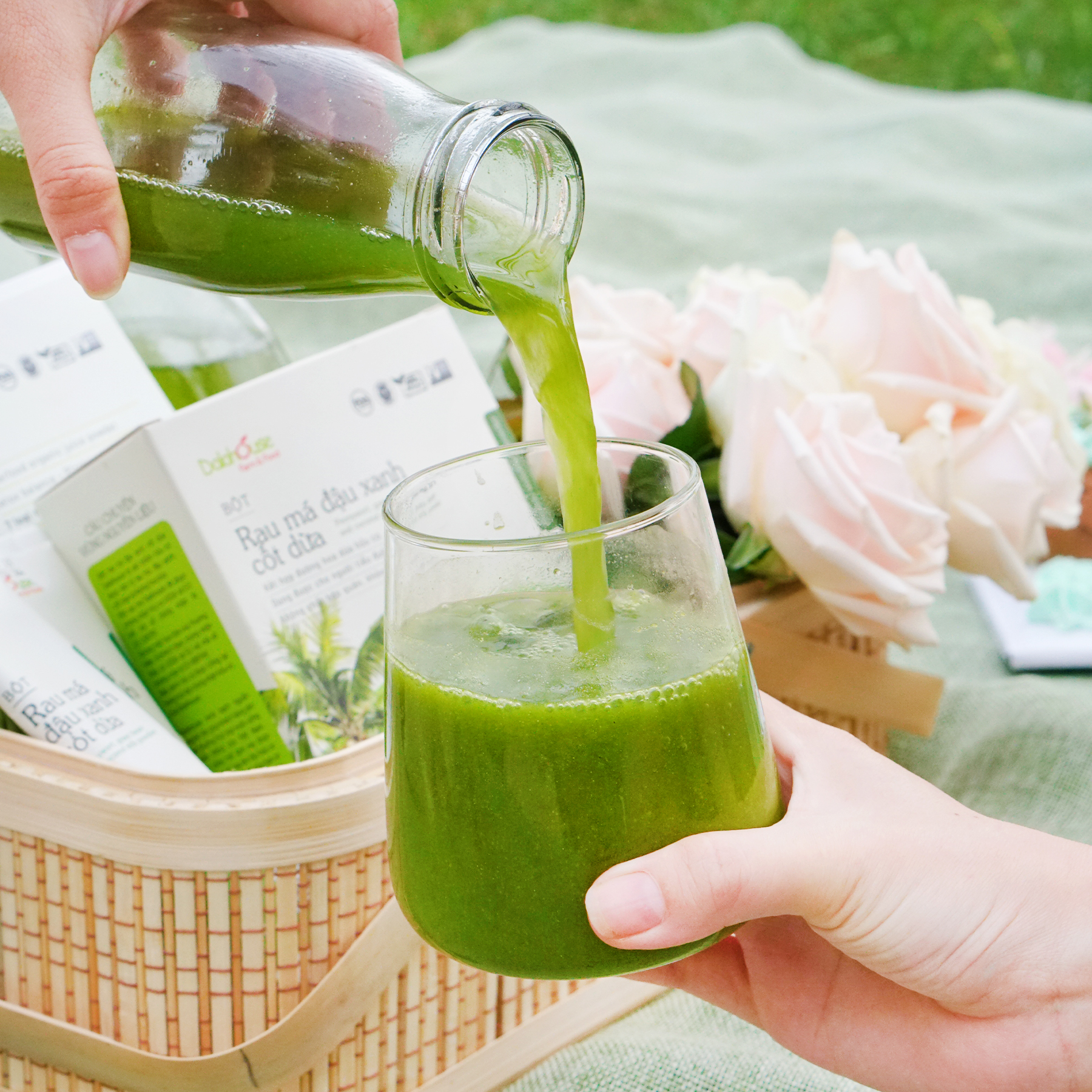 Tên sản phẩm: Bột rau má đậu xanh cốt dừa Thương hiệu: DALAHOUSE Quy cách: hộp 200g Xuất xứ: Việt Nam Hạn sử dụng: 12 tháng từ ngày sản xuất Thành phần: 42% rau má, 30% đậu xanh, 8% cốt dừa, 20% đường hoa dừa. Không sử dụng bất kỳ phụ gia hay chất bảo quản. Bột rau má đậu xanh cốt dừa Dalahouse Bột rau má đậu xanh cốt dừa là sự kết hợp hoàn hảo các hương vị thuần tự nhiên của rau má giàu vitamin và khoáng chất, đậu xanh giàu protein, nước cốt dừa giàu dầu béo lành mạnh và đường hoa dừa giàu chất điện giải. Rau má đậu xanh cốt dừa Dalahouse mang giá trị dinh dưỡng cao nhăm đáp ứng nhu cầu sức khỏe tự nhiên cho người dùng. Bột rau má đậu xanh cốt dừa ngọt tự nhiên từ đường dừa hữu cơ   Bột rau má đậu xanh cốt dừa Dalahouse mang dinh dưỡng đa chiều bởi nó cung cấp đủ dưỡng chất từ rau má (vitamin C, A, canxi), đậu xanh (protein, B1, B2, canxi), và nước cốt dừa (dầu béo, kali). Là thức uống không chỉ giải nhiệt mà còn hỗ trợ sức khỏe tim mạch, làm đẹp da, tăng cường năng lượng. Bột rau má đậu xanh cốt dừa Dalahouse sử dụng dễ dàng và linh hoạt tốt nhất cho những người chú trọng đến việc chăm sóc sức khỏe và tận hưởng hương vị tự nhiên mỗi ngày mà không cần quá nhiều công đoạn nấu nướng. Bột rau má đậu xanh cốt dừa năng lượng đa chiều cho người bận rộn Công dụng rau má đậu xanh cốt dừa: