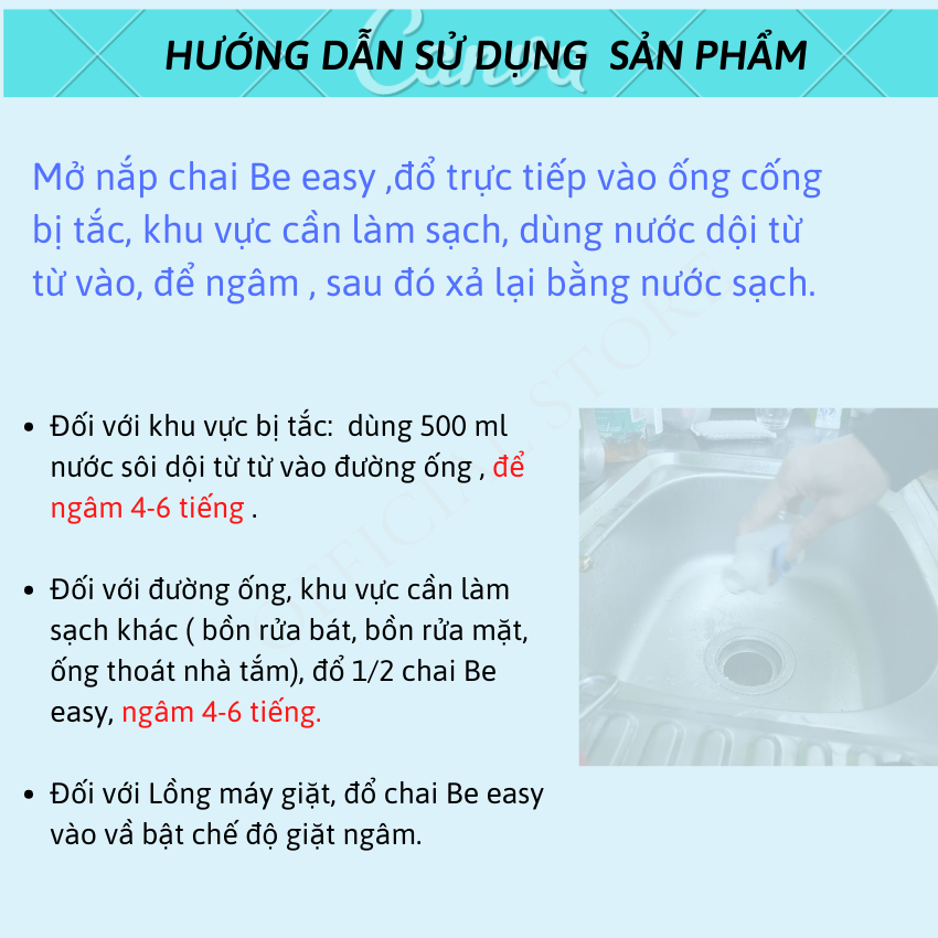 Be-Easy bột chống tắc nghẽn đường ống thoát nước, thoát sàn, chậu rửa bát, lavarbo ... (Dr.C)