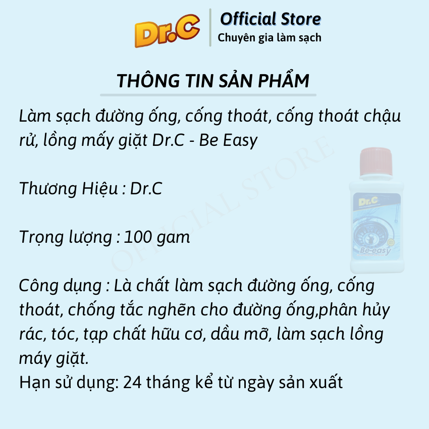 ✨Bột Thông Tắc Đường Ống, Cống Thoát, Chậu Rửa, Vệ Sinh Lồng Giặt Dr.C CHÍNH HÃNG - Be.Easy