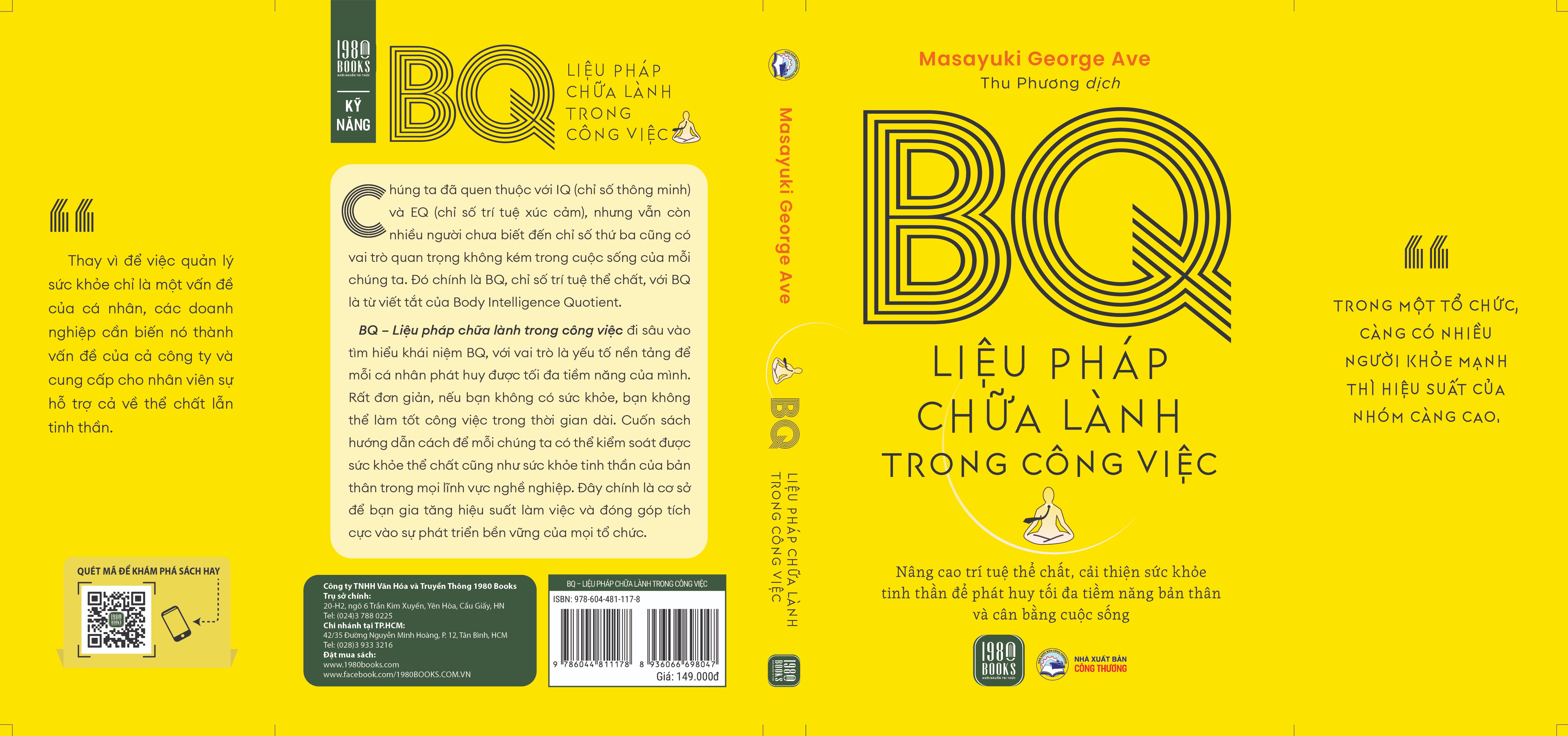 Cuốn sách BQ – Liệu pháp chữa lành trong công việc đi sâu vào tìm hiểu khái niệm BQ, với vai trò là yếu tố nền tảng để mỗi cá nhân phát huy được tối đa tiềm năng của mình. Rất đơn giản, nếu bạn không có sức khỏe, bạn không thể làm tốt công việc trong thời gian dài. Cuốn sách hướng dẫn cách để mỗi chúng ta có thể kiểm soát được sức khỏe thể chất cũng như sức khỏe tinh thần của bản thân trong mọi lĩnh vực nghề nghiệp. Đây chính là cơ sở để bạn gia tăng hiệu suất làm việc và đóng góp tích cực vào sự phát triển bền vững của mọi tổ chức.