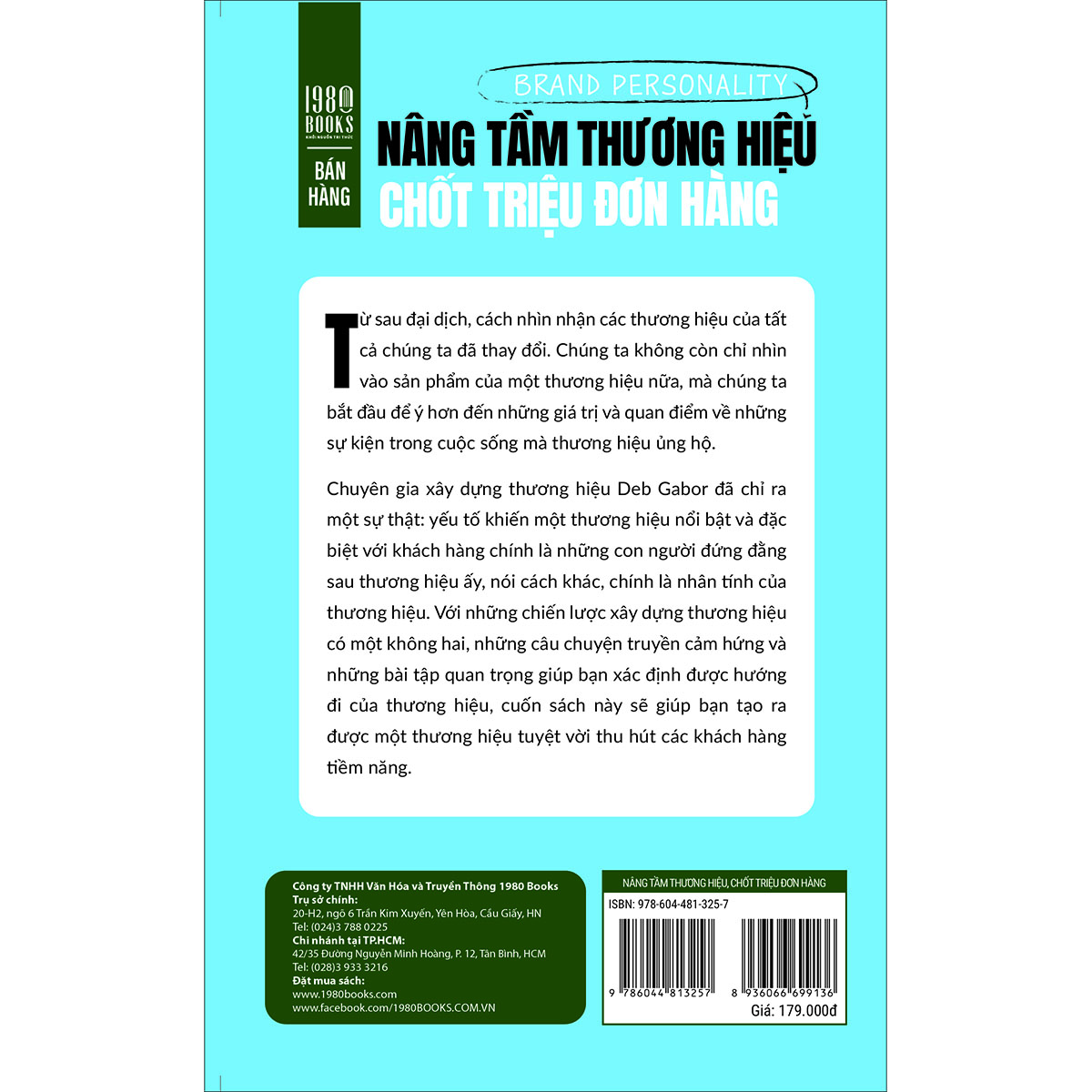 Chuyên gia xây dựng thương hiệu Deb Gabor đã chỉ ra một sự thật rằng: Yếu tố khiến một thương hiệu nổi bật và đặc biệt với khách hàng chính là những con người đứng đằng sau thương hiệu ấy. Hay nói cách khác, chính là nhân tính của thương hiệu. Với những chiến lược xây dựng thương hiệu có một không hai, những câu chuyện truyền cảm hứng và những bài tập thực hành thực tế, cuốn sách “Brand Personality – Nâng tầm thương hiệu, chốt triệu đơn hàng” sẽ giúp bạn tạo ra được một thương hiệu tuyệt vời thu hút các khách hàng tiềm năng.