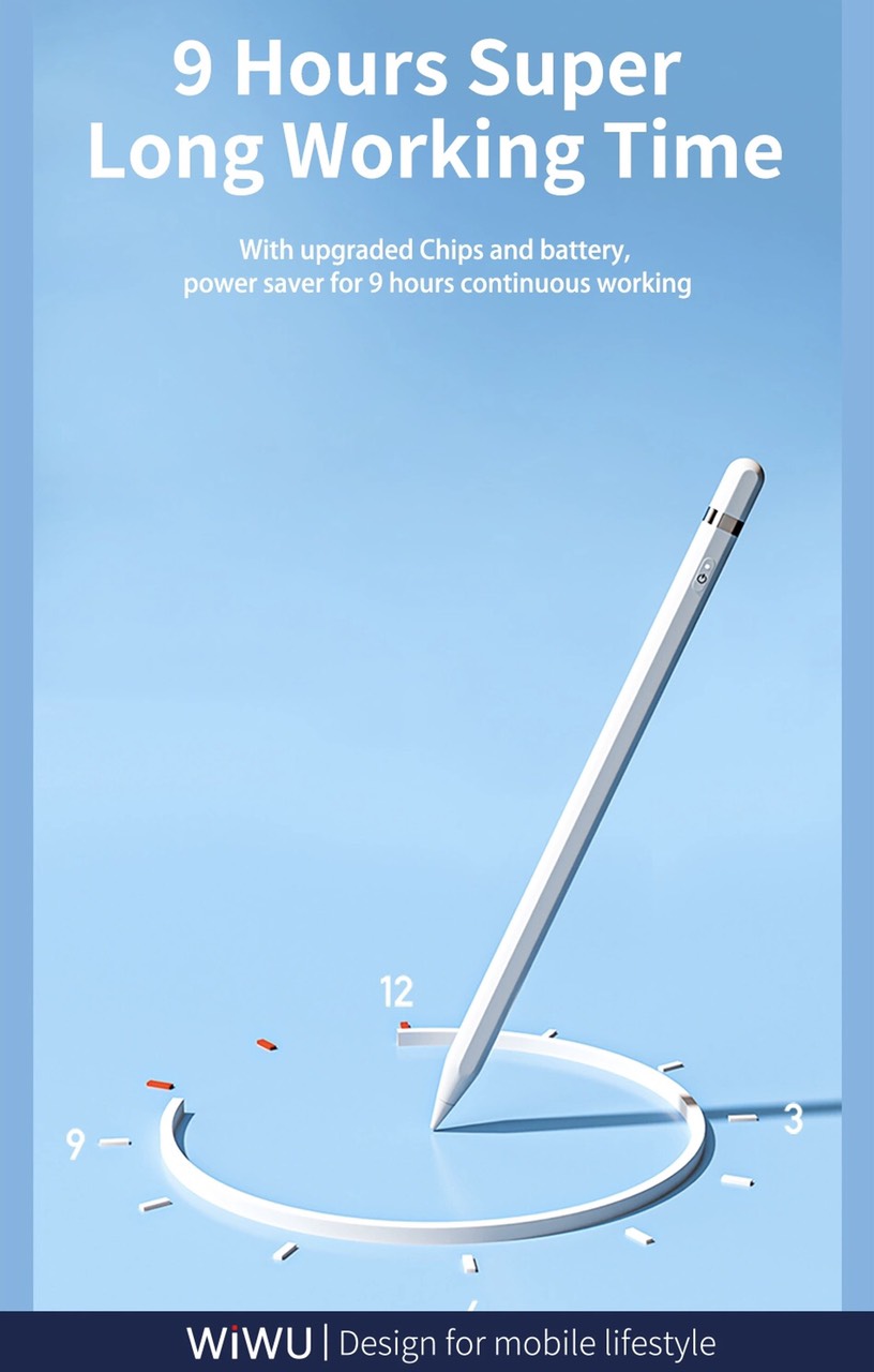 Bút cảm ứng WiWu Pencil Pro Hợp kim nhôm + Sợi dẫn điện Pin Lithium có thể sạc lại, 80mAh Sạc nhanh loại C trong 2 giờ, sử dụng trong 8 giờ Đặc điểm: *