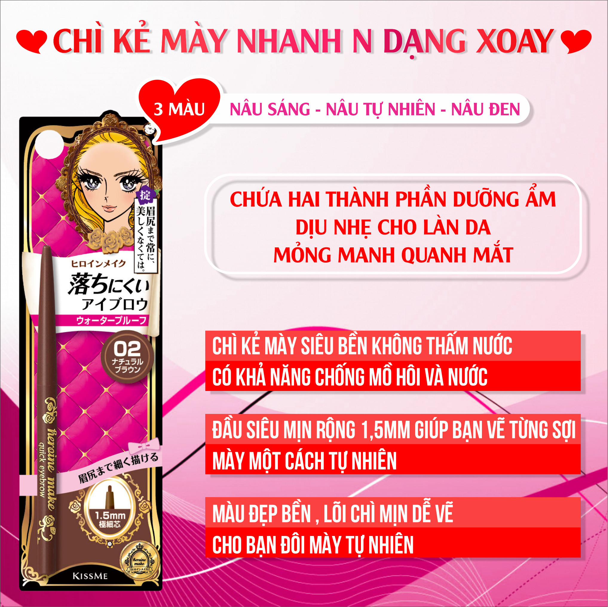 ✨Bút Chì Sáp Kẻ Lông Mày Không Lem Trôi Lõi Siêu Mịn Màu Nâu Tự Nhiên Kissme Heroine Make Quick Eyeliner