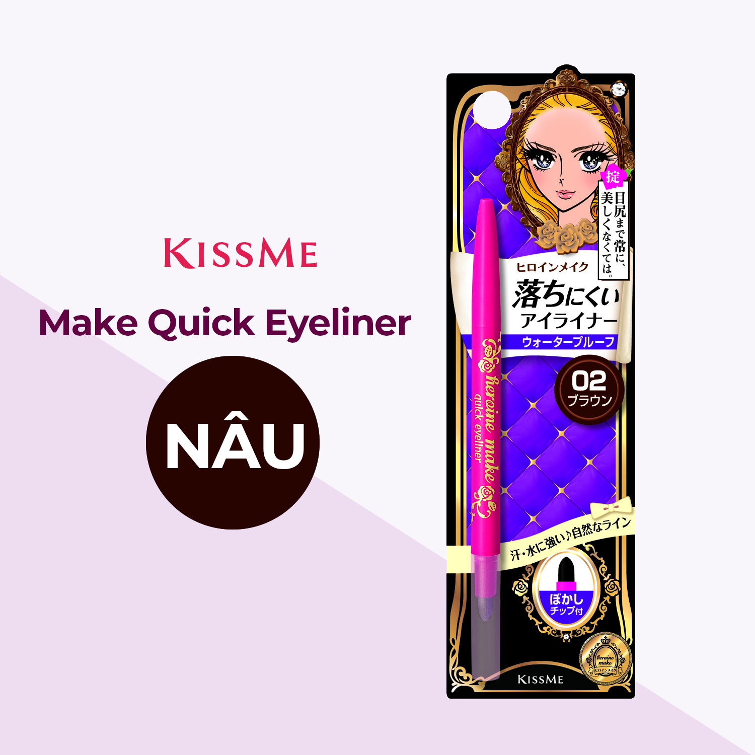 ✨Bút Chì Sáp Kẻ Mí Mắt Không Trôi Nét Vẽ Tự Nhiên Dạng Xoay Kissme Heroine Make Quick Eyeliner (02 Màu)