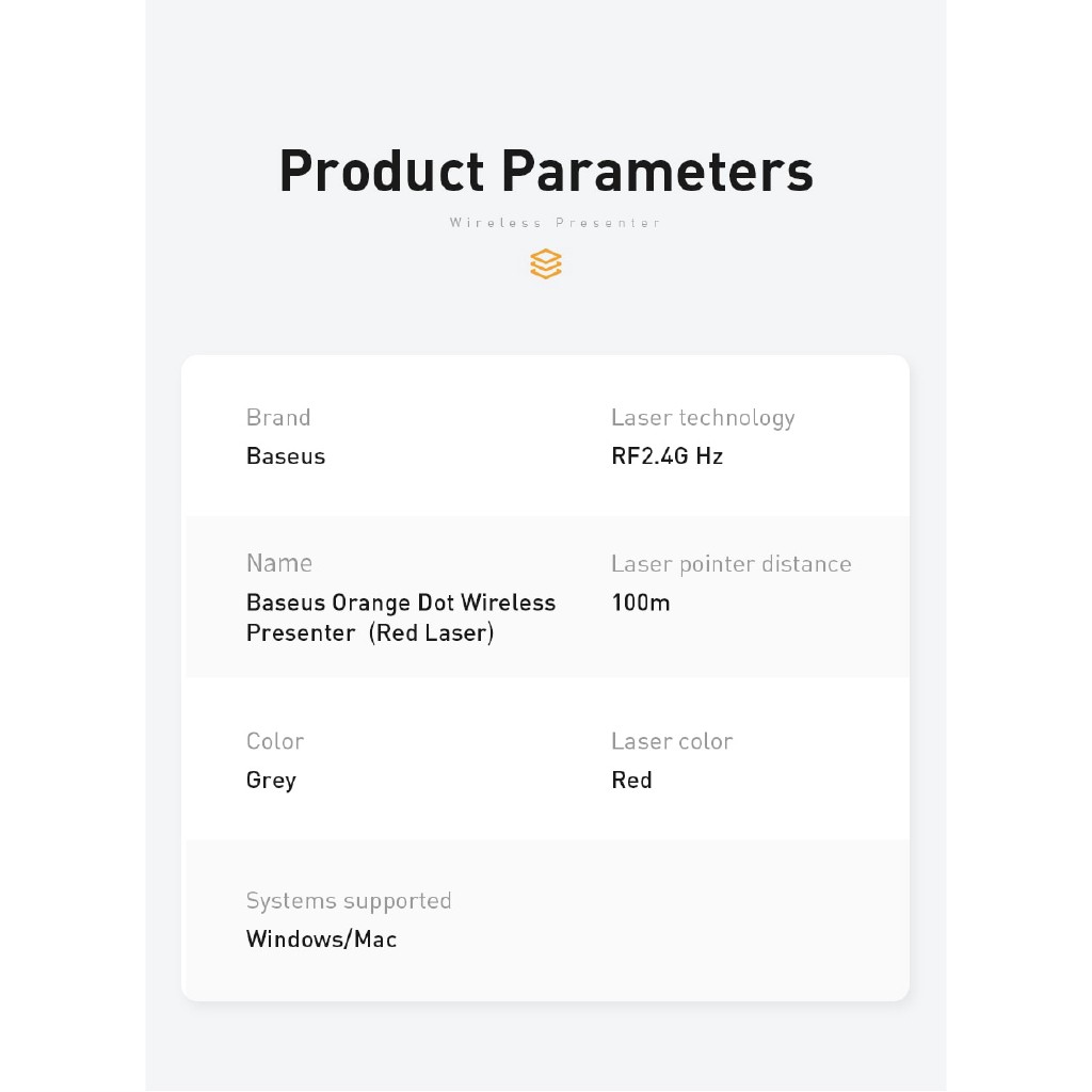 Mua tại TiktokTính năng cơ bản Bút Laser trình chiếu Baseus Orange Dot Wireless Presenter cho Laptop/ Macbook (2.4Ghz USB/Type C Receiver, Wireless Remote Control, Red Laser Pointer/ Presenter)