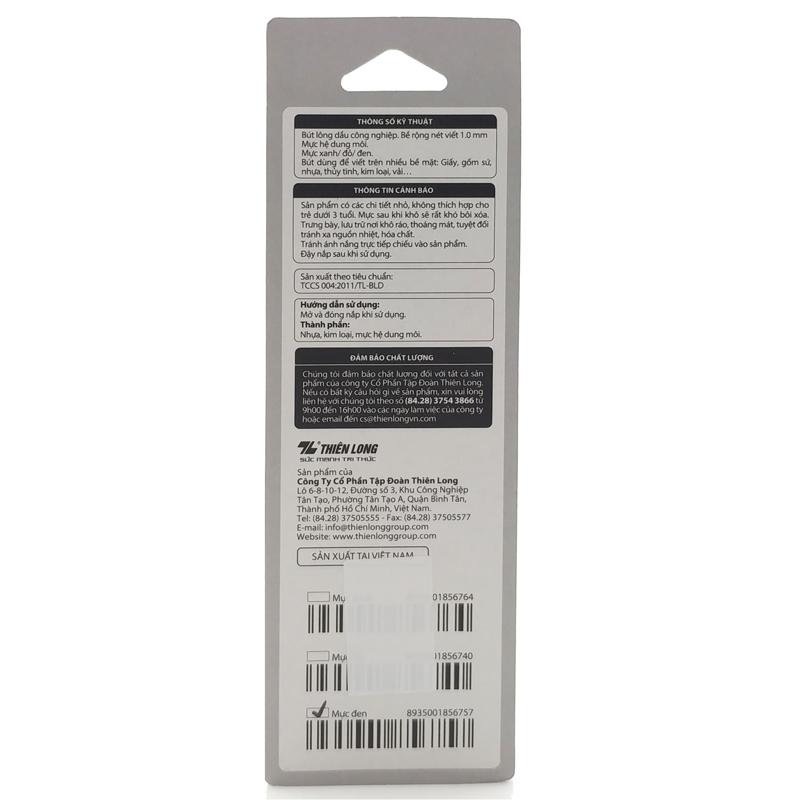 Thông số kĩ thuật : Tên danh mục Bút lông bảng Thương hiệu Thiên Long Bề rộng nét viết 2.5 mm Tiêu chuẩn TCCS 003:2011/TL-BLB Xuất xứ Việt Nam Sản xuất Việt Nam Khuyến