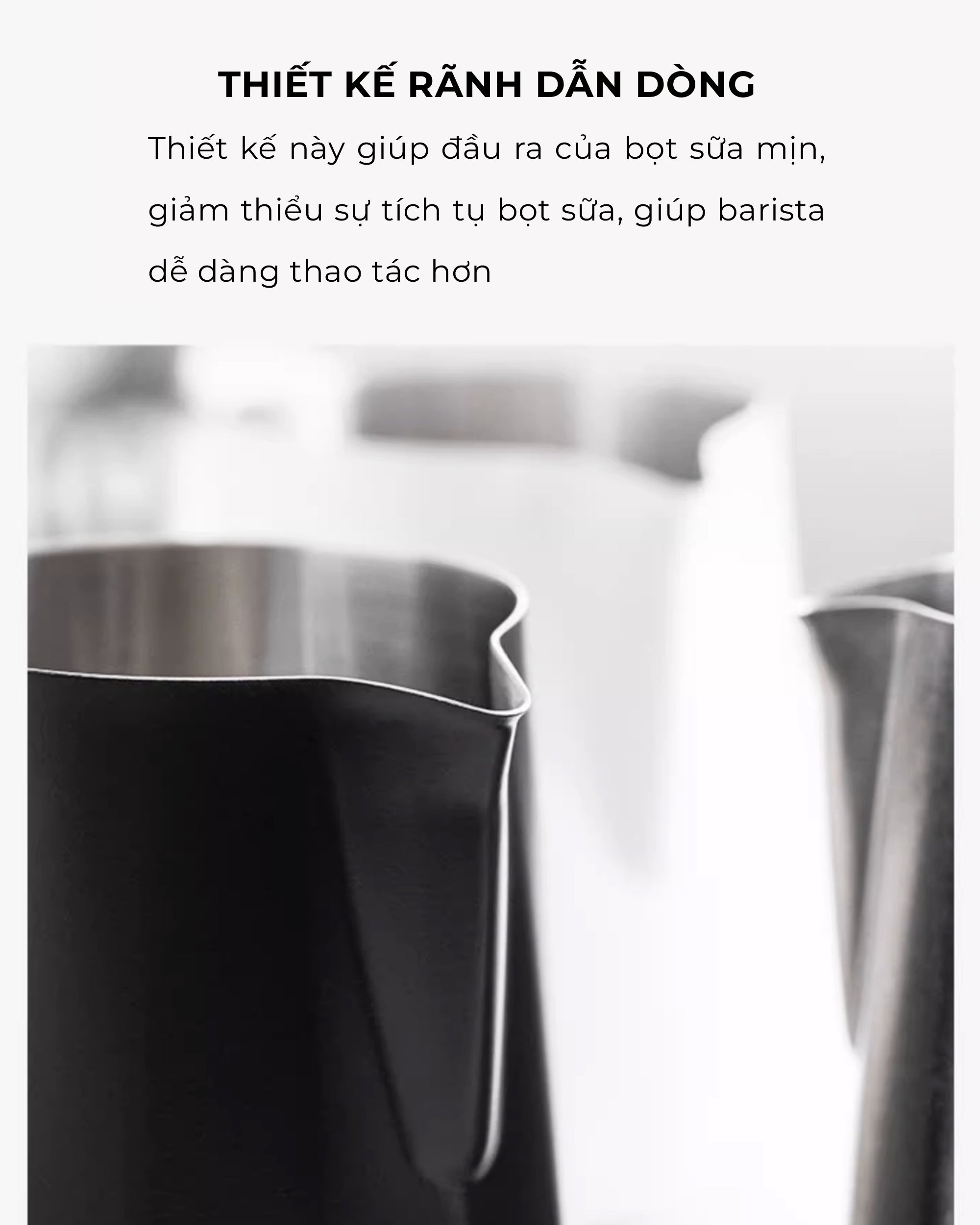 Rãnh dẫn dòng giúp đầu ra của bọt sữa mịn, giảm thiểu sự tích tụ bọt sữa, giúp barista dễ dàng thao tác hơn.